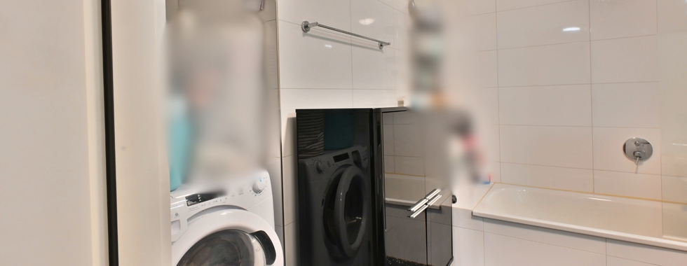 Elegantes Badezimmer (6.1 qm) mit Badewanne und Waschmaschine
